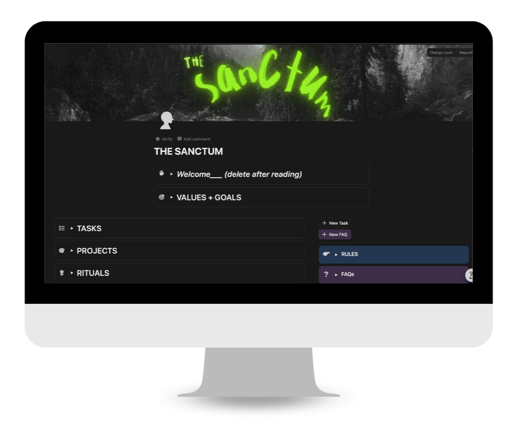 A year of Notion Expert coaching + developing The Ritual Wheel Method, life architecture, and refining this system until it finally worked for my brain (and now yours) wrapped into your Sanctum.